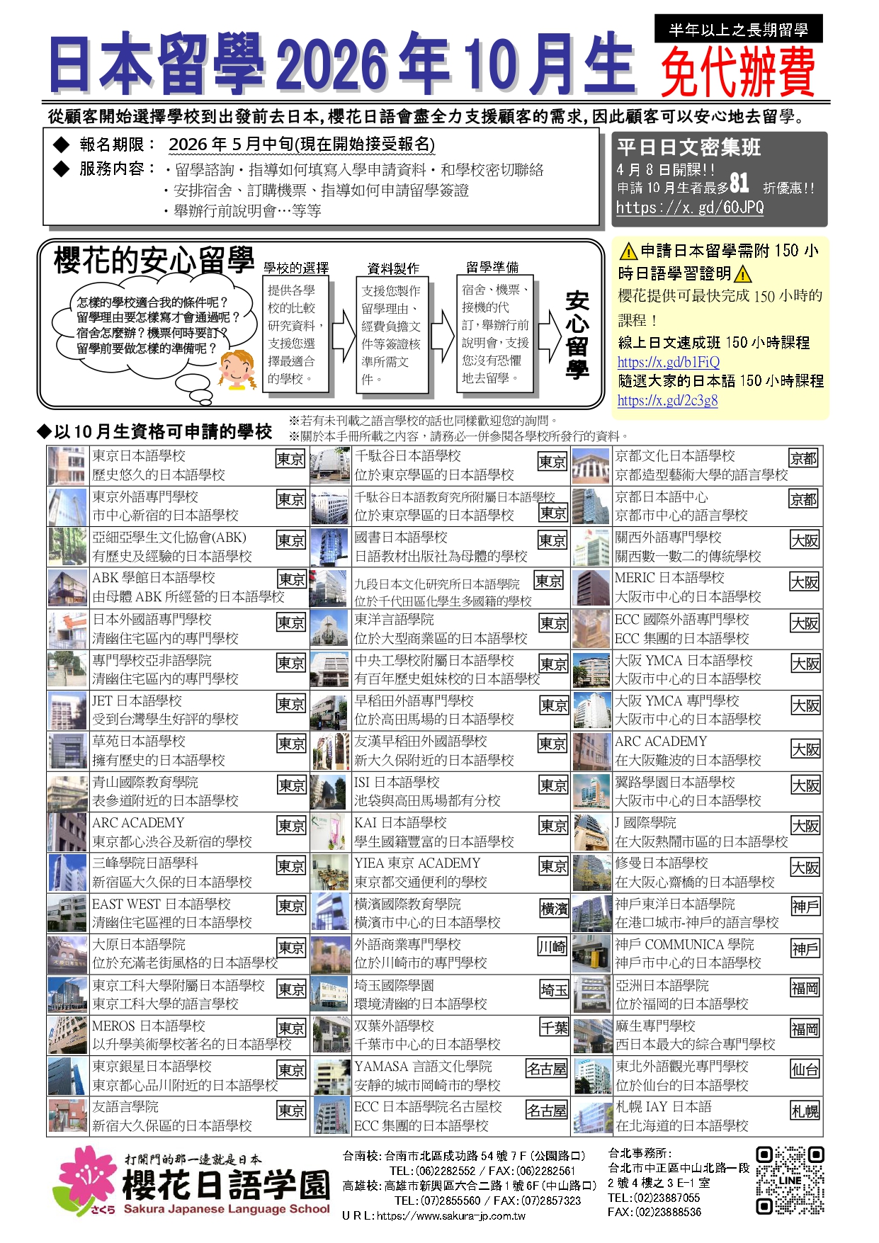 ※熱門學校,特別是關西地區的,經常很快就額滿,建議儘早洽詢。